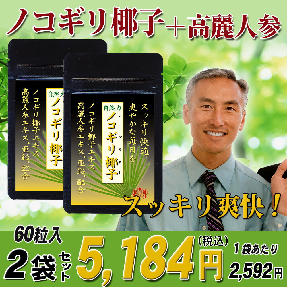 ノコギリヤシ (約2ヶ月分) 送料無料 サプリ 1袋60粒入2袋 ノコギリヤシ 320mg配合 高麗人参 亜鉛 ネコポス 国産 大日ヘルシーフーズ直販 製造元だから高配合