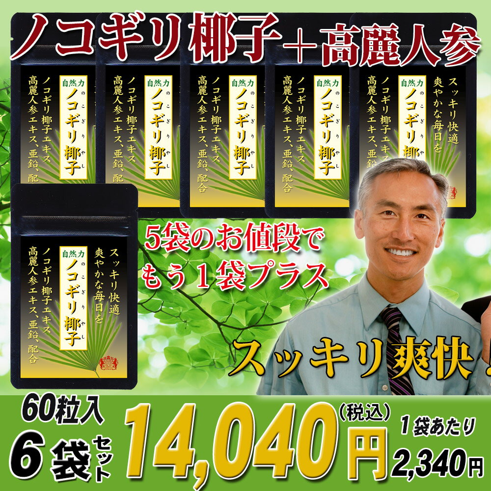 ノコギリヤシ 5袋で1袋プレゼント(約6ヶ月分) 送料無料 サプリ 1袋60粒入6袋 ノコギリヤシ 320mg配合 高麗人参 亜鉛 国産 大日ヘルシーフーズ直販 製造元だから高配合 あす楽 お得用 サプリ