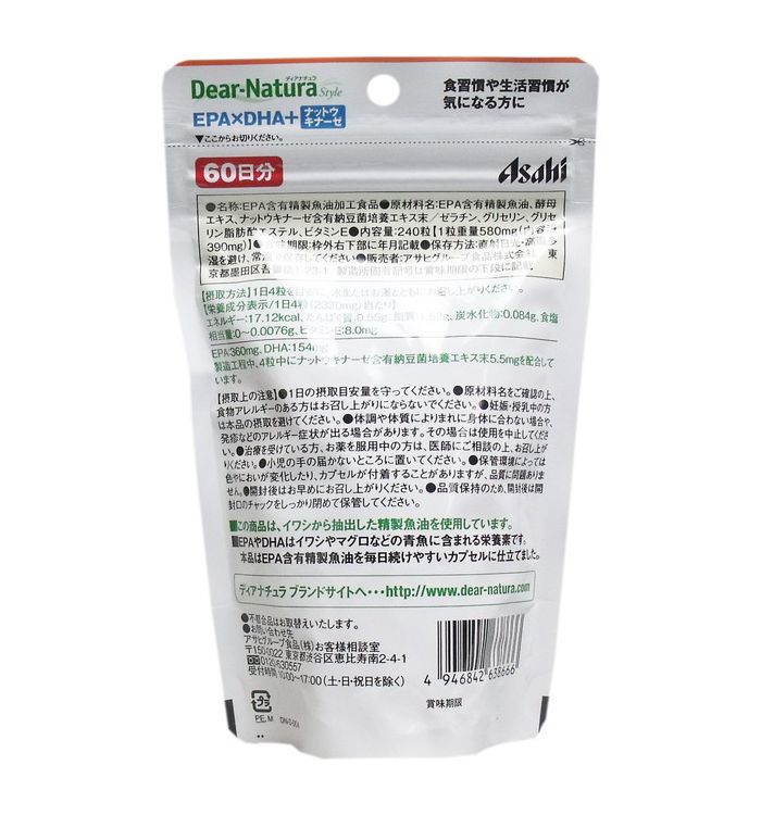 【発売元:アサヒグループ食品】オメガ3系脂肪酸EPA・DHAにナットウキナーゼも一緒に摂れる!現代人の不足しがちな必須脂肪酸であるEPAを簡単補給。